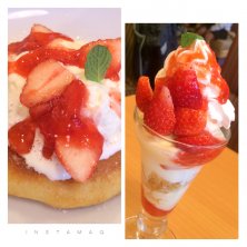 *いちごとマスカルポーネのパンケーキ *フレッシュいちごパフェ 苺づくし〜♡(◍˃̶ᗜ˂̶◍)ノ"