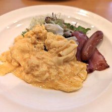 今日はお袋さんに会いに実家へ。 久しぶりのガストのモーニング。 スクラブルエッグにベーコン添え