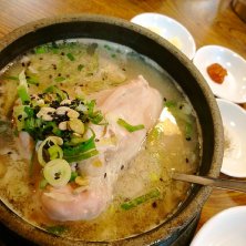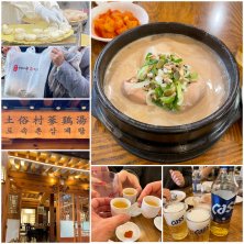 朝ごはんは景福宮駅から歩いて5分ほどのところにある参鶏湯の有名店(ソウル三大参鶏湯屋の1つ)、土俗村で。 シンプルな味の中に、鳥の濃厚な味わいがしっかり凝縮している、美味しい参鶏湯でした。 烏骨鶏と普通の鳥、高麗人参ありとなしと、4つの種類があり、全てにキムチやカクテキが付いて来ます。 若者ならペロリと食べられるけど、この歳で一人1つは多いかも。その場合は、参鶏湯1つにチヂミひとつ頼むのがいいかも。 美味しかったです!