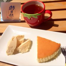 横浜に帰る前に、那須のアウトレットのチーズガーデンで小腹を満たしました。チーズケーキ食べ比べという夢のようなメニューがありまして♥ 左上から、レアチーズとチーズケーキの真ん中みたいな「しらさぎ」、下にビスケット生地がひいてある「フロマージュブラン」、真ん中はスフレ状の「クレームダンジュ」、下段がハードタイプの「東京ピュアホワイト」、同じハードタイプの「御用邸チーズケーキ」です。個人的には「御用邸チーズケーキ」が激ウマでした(^ー^)