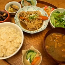 元気定食♡ ・岡山県産森林どりのむね唐揚げ香味ソース ・しらすと4種類の野菜サラダ ・もやしのナムル ・切り干し大根 ・金平ごぼう ・とろろ(本当は生たまご) ・胚芽米 180g ・季節のみそ汁 ・漬物 高タンパク質&高鉄分✨ どれも美味しくて、特に唐揚げの香味ソースがめっちゃ美味しかったー😋