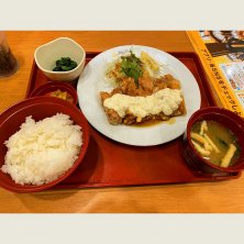 たっぷりタルタルソースの チキン南蛮定食 飢えていたチキン南蛮! ようやく食べられる。 何度か食べてるので分かってましたが 少し残念なのがチキンの衣がカリカリ。 ただ欲してたので満足😋 身体にしみわたっていく感じ。