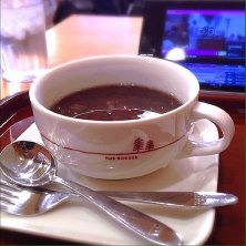今日も寒かったので近くにあったモスバーガーのお店で温かいおしるこを注文。^^ 玄米の素朴な感じのお餅が入っててホクホク美味しい。