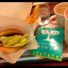 菜摘(友達)の誕生日ということで、菜摘を食べにモスへ♡ 食べにくかったけども美味しかった〜♡