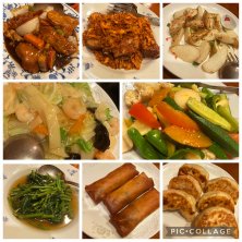 昨日の忘年会❗️右下は2次会のマジックショー。(ハーレークィーン) 楽しかった😅 中華は変わった物を作ってもらいました。白子料理、鹿肉料理、カニとフカヒレスープ茶碗蒸し入り、ホタテ、タイ、etc…