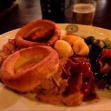 有名なローストビーフを頼もうとしたら、クリスマスだから七面鳥にしなさいと言われて。ヨークシャープディングと七面鳥のロースト。