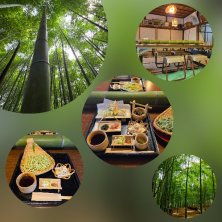 竹そば 竹の粉末が練り込まれて竹の香りがする。 天ぷらは、もみじ、柿の葉、たんぽぽ、とあとなんだだっけ? イワタバコの佃煮初めて食べた。 苦いけど深い味わい。 さすがお寺、品が良い料理(º﹃º )