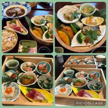 旬菜桶膳、鯛荒煮、タコ飯 上段 今回夏 九重膳 下段 前回冬 本業は仕出屋さんのランチ。土日祝や、繁忙期はお休みですが、タイミングが合うと利用、間違いない美味しさ! 実は今日のお昼、京都貴船の川床料理を予約していたのですが、ずっと雨予報のため、増水してたら怖いし、三日前にキャンセル。 先程、ニュースを見ていたら、今日の午前貴船の川床が崩れ、高齢のお客さんが流されたと!増水して濁った川の映像が流れて、川床は雨上がりも油断できないと身につまされました!お店の方が救助されたそうで、無事で良かった!