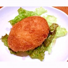 東京都江東区 門前仲町駅の付近に有る居酒屋の店、門前茶屋の深川コロッケ。 アサリとおからをパン粉で包んで揚げたコロッケで、レタスが添えられております。 人気メニューの1つでしたので頼んでみました。1個入りと2個入りが有り、とりあえず軽く食べたかったので、1個入りにしました。味はアッサリとした感じでしたが、アサリの旨味があって美味しかったです。