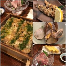 深川めしを食べてきました! 焼き物が多い店で、カウンターの内側におじさんがいて、頼んだものをその場で焼いてくれます 深川めしと、寒ブリの刺身、玉子焼き、あさりバター、焼き鳥をいただきました