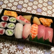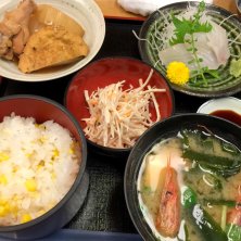 ランチはお寿司屋さんで レディース膳 ¥1,200 お刺身に、たっぷり出汁に浸かった揚げ物は 揚げ出し豆腐 ふきのとう タケノコ 舞茸 エビ ナス 、カニサラダ、フルーツ お腹いっぱい!スゴい量〜(^^) レディース膳だけど、メニューに「男性もどうぞ」って書いてあったのが笑えた(^^) 2016.03.20 D