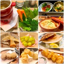 先日の「女子会?」での食事 5人なので個室にて会食(^-^) 照明が暗く上手く撮れてないけど.... 投稿しますね アテには 沢蟹・ベラタ・鯨の尾身・蒸し鮑・筍 メインは 車海老の天揚げ・和牛ハネシタ 他には 蓮根饅頭・雲丹やヒラメ等の刺身 ご飯は 穴子棒寿司・海老押し寿司 デザート 赤肉メロン 盾野川 純米大吟醸とともに 🍶 簡単なご報告でした ♪(´ε` )