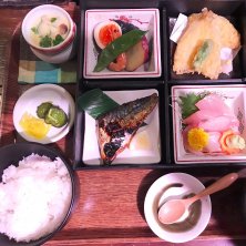 昨晩新幹線の中で魚系三色弁当たべたのに 今日のランチもお魚にしてしまいました…。 大好きなほっけ焼魚定食頂きます☆