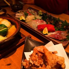 母と母のお友達と一緒に、西田辺のお気に入りのお店の一つ、土の花へ。 お刺身のいいとこ取り盛り合わせ、蒸し野菜、地鶏の唐揚げなどなど、食べ過ぎかしらん。