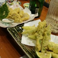 辛し蓮根とアスパラの天ぷらat 肥後勝