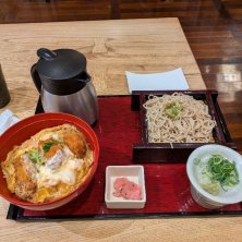 今夜もライブなので早めに晩ご飯。 広島県産カキフライの玉子とじ丼と蕎麦のセットで。ちょうど牡蠣が食べたいな〜と思ってたところでした。