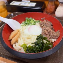 冷やし肉ぶっかけうどん ¥920円 中にしたけどちょっと量ありますね。 ミニがその半分らしくそれでも十分かもです。 肉もたっぷり入っていて細めでコシ弱め ちからのうどん‼︎って感じです。