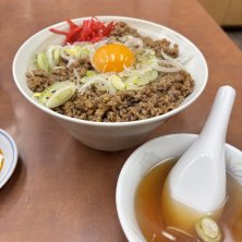 高校での打ち合わせ終了後のお昼ごはんは、肉丼と餃子。