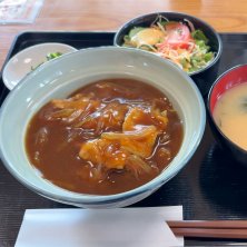 金曜カレーは、出汁の効いた蕎麦屋のカレー丼 1000円 ご飯半分にしてもらいました まったりとしたカレーが 旨旨!