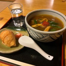 日向は ◉きつね入カレーそば&おいなりさん 日陰から日向に出ると少し汗ばむ京都三条堺町 もっと前から行ってみたいに保存してたランチっぽいとこを選ぶつもりが、結局蕎麦屋へ この後に通院もあったので、ささっと済ませる感じでここに来た メニューには無いカレーそば 一番最初に来た時にオススメ聞いたらカレーそばでした 僕的な美味しいそば屋さんは、何故かどこもカレーそばを一推ししてはるとこ多し そやけど、そばが結構のびてて、出汁もいつもよりしょっ辛かった 前なら飲み干すだし汁を残す事が出来た