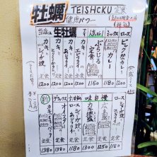 またもやメニューに目を奪われるww 定食の英語表記が"TEISHCKU"… "C"の部分…"O"じゃないのか? ww だが近くに寄せて見ると なんとなく"O"がかすれて "C"に見えなくもない的モヤモヤが… メニューの中身より そんなことが気になって 戸惑ってしまった(笑)