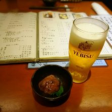 焼き味噌。 そばの実たっぷり。 かつお出汁のきいた焼き味噌は珍しいかも。 そば屋は最初に板わさ注文すればその店がわかるとか聞くけど、そば屋の板わさがわさび醤で出てきた時の悲しさといったらないので、うちは焼き味噌を最初に注文する事にしてます。 焼き味噌はお店によって味が全く違うから。