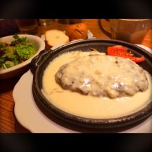 今日のランチです♪ こんにちは〜 今日ゎ鉄板ハンバーグのランチ(((o(*゚▽゚*)o))) ハンバーグわ、すごい大きさでした〜♪ ソースゎクリームフォンデュソース♡ トロトロのチーズでした〜(≧∇≦) パンゎフランスパンにくるみパン♡温めてくれていました♡ あとゎサラダとコーンスープ‼︎ また行きたいと思いましたね♪