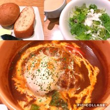いつかのランチ♪ ※煮込みハンバーグ ※サラダ ※スープ ※パン 久しぶりにあった知り合いとのランチ♪ の記録投稿😅 2週間くらい前です💦 このお店はずっと好きだったけど 今はメニューも変わってしまいました。 昔の方が好きだったけど… 思い出もあるお店なので ゆっくり出来て良かったです😊