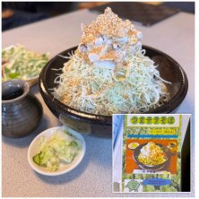 嬬恋村のキャベツ畑を眺めながら移動🚗 旅館の朝ごはんでお腹いっぱいだったから、 軽くお蕎麦食べようかーって入ったお店で 盛りがすごくて焦った一品。 一番下は冷たいお蕎麦、 その上にすごい量のキャベツとおろしがどっっさり。その上に豚しゃぶとゴマだれ。つゆをかけていただく。 ヘルシーかなと思ったが完食するの大変だった 2025/9/20