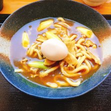 今日のランチはここで頂きましょう 食べログで高評価だから(笑) 諏訪カレーうどん 見た目はカレーうどんですがうどんの下には とろろ昆布でコーティングされたご飯が 入っています…お店の桶売り このカレー美味しい(∩❛ڡ❛∩)