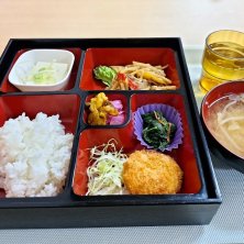 2025/3/3 今日のランチ 豚肉と竹の子の黒胡椒炒め コーンクリームコロッケ 漬け物 モロヘイヤのおひたし 冷奴 味噌汁 寝坊して次男に起こされた朝 明日から公立高校入試期間ということで、次男坊は午前授業のみ 友達とご飯食べてくるも良し、家で何か食べるも良し 私は食堂でランチ弁当