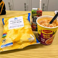こんばんは 夜勤の休憩時間です 連勤なのもあって疲れた… 今夜はトムヤムクン味のラーメン、ポテチ、野菜ジュース 夜勤明けはセガのラッキーくじが残ってたら引いて帰りたい! そしてポチったフィギュアも届くから楽しみ だからきっと夜勤の残り時間も頑張れるはず