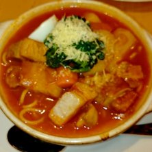ハンガリアングラシー パスタが入ったお肉と野菜のトマトソース煮込みのようなお料理。 ちょっとピントずれました(^^;