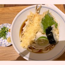 たこ天うどん 630円 讃岐うどんは、角ばっててコシ強い麺にぶっかけイメージの方が強いのでしょうか…? 昔からあるというこのお店、やわらか細麺に生姜と柚子載せおつゆとたこの天ぷらの組合せ、好みでした。