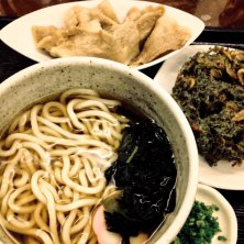 #東京グルメ探訪!#目黒区 #中目黒編 #東横線中目黒駅から #歩いて10分程 #ガード沿いの #裏路地に #隠れ家的な #知る人ぞ知る #行列のできる #評判の #名物 #のりぶっかけ #手打ち饂飩 #人気名店 #「うどん sugita」#初訪問! #迷わず#五色揚げ饂飩 #肉つけ #オーダー #五色揚げ #干し海老 #生姜 #葱 #青海苔等 #饂飩 #つるつる #しこしこ #喉越し良し旨! #つゆ #鰹出汁良し #円やか上品旨味抜群旨! #(2012,02,12.訪問)