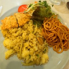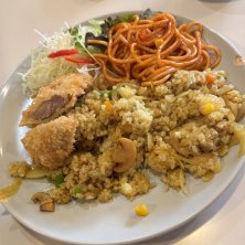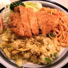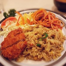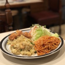 日替わり弁当 生姜焼き チキンカツ ハスの天ぷら 初めて入ったけど、TVが店内じゃなくてキッチンに向いていたり焼肉定食で仕上げのソースかけるのがコックのおじさんじゃなくてホールのおばちゃんだったり、、 なんだかちょっと不思議な感じのお店でした(笑)