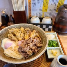 というわけで本日は「踊るうどん」へ。 うん。踊ってる。踊ってるのはええんやけど…忙しないな(せわしない、と読みます) 周りをしっかりと見れてないなあ…味とかじゃなくてさ、こういうとこがこの店… まあええわ。 まいたけ天肉ぶっかけ〜。 まいたけ天が香ばしく、肉は甘め。関西人が好きな味やね。まいたけ天は醤油かけたほうがウマウマ。 うどん自体は正統派の太さ、弾力。 ぶっかけだしは甘め?かな。 味は嫌いやないんやで!でもなー…