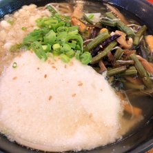 お昼はごぼう天うどん 大きさの割に意外とあっさりしていて(・∀・)ウマー このご時世サラダバー無料は凄いw