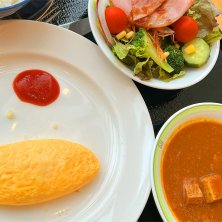 ホテル日航新潟での朝食ブッフェ🍽️🥚 シェフが目の前で焼いてくれる、ふわふわのオムレツ🍽️がとっても美味しかったです! トッピングはとろとろチーズ🧀入りにしてもらいました♪ 魚沼塩沢産コシヒカリと雪室熟成朝カレー🍛も、旨みが凝縮したまろやかな味わいでした! 朱鷺メッセに隣接したホテル日航新潟は、新潟市街や日本海が一望できる日本海側で一番の高さを誇るホテル… 26階の客室からは日本海、佐渡島、新潟の街並みなど、感動的な✨夜景🌃🎄を楽しむことができました