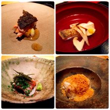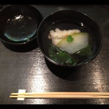 じき宮ざわ最終記録です。 *鰻と蓮根 山椒の香り *秋刀魚のつみれ 八種のキノコのお出汁 *滋賀長浜の自家栽培コシヒカリ *香の物(オクラ味噌漬け、キャベツとおかかのお新香他) *おじゃこの白味噌だき *完熟渋柿 *手作り最中にお薄 鰻がありえないほどカリッと焼き上げられて。本当に焼いただけかと何度も質問(笑) キノコだけのお出汁は4時間かけて引いたそうです。 新米は蒸らし時間をずらして、三段階でお味を楽しみます。 私は甘みと香りと歯ごたえの揃った2番目が好み♡ 幸せな一夜でした!