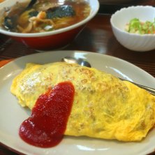 今日のランチはオムラー。オムライスも食べたーい、ラーメンも食べたーい方の夢のセット(笑)オムライスは昔ながらでうまいε-(´∀`; )