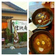 2012年東海の旅 その6 新幹線で帰るため、豊橋まで送ってもらい ついでに豊橋カレーうどん (^^)/ カレーうどんの下にとろろごはんが入ってます 普通と辛口