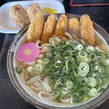きつねうどん+かしわおにぎり。初めて来たけど美味しかった~。