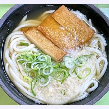 宮崎県宮崎市 市内に7店舗有る饂飩と蕎麦の店、三角茶屋 豊吉うどんの天かうどん。天ぷら(薩摩揚げ)、揚げ玉と葱を乗せた宮崎名物の饂飩。宮崎饂飩では薩摩揚げの事を天ぷらと呼んでいる。天かとは、天ぷらと天かすの頭文字を取った物である。本当のオススメの饂飩は、天玉かうどんという生卵が追加された物であるが、卵が苦手な為食べなかった。シンプルな味ながら薩摩揚げのプリプリ感と揚げ玉の相性が良くて美味かった。ただ、饂飩はコシが無く柔らか過ぎるのが残念であるが、宮崎饂飩の特徴らしい。列車待ちの間の朝食に食べた。