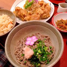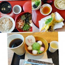 昼ご飯 天ぷらうどんセット 割子蕎麦セット おやつ 冷やしぜんざい 念願の吹ガラス体験行ってきた😄 中々難しかったけど、仕上がりは職人さんのサポートでいいものできたかな? うどんと蕎麦は旦那とシェアして食べた😊 ここの炊き込みご飯が美味しい✨ おやつは出雲大社の街道で食べた🍨