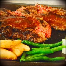 長野で食べたハンバーグ。 中はレアです! 静岡で人気のさわやか的な、ハンバーグのお店。 国産牛肉100%のお肉はジュンシーで赤身の旨みもある! 美味しいハンバーグでした。