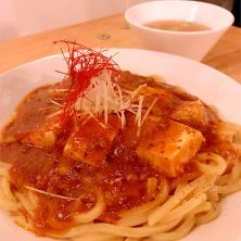 極太麻婆豆腐麺👲 (。・ω・)ノ゙ コンチクワ♪ 戒厳令が出る前に表参道にあるロケット商会ってトコに行ってきたよ🚀🔥 青学を抜けてずっと先に行った裏路地にその店は静かに佇んでいた。 普段は夜にスタンディングでお酒を呑むとこらしー🍒 そこでオーダーしたのは麻婆豆腐がたっぷりのった極太麺🤗 ちゃーんと大森を頼みましたよლ(╹◡╹ლ)