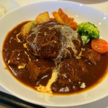 ビーフシチュー煮込みハンバーグ。ありそうでないビーフシチューとハンバーグのコラボ。さすが研究所ですね。