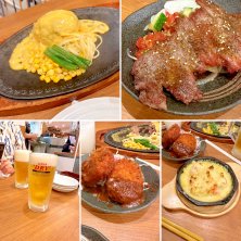 昨日の晩ごはんはモンブランでハンバーグ 稲垣に行ったら大行列。絶対無理だから、諦めてモンブランへ。 夫と娘はハンバーグ、わたしはいつものビールセット。サーロインステーキサラダ、チーズコロッケ、海老アボグラタンなど。 多分モンブラン行ってハンバーグ頼まない人って珍しいよね。 息子は「行かないー!家でゆっくりしていたい」テスト疲れだというので置いてきた。ので、息子の大好物のオランダ風ハンバーグをテイクアウトして帰りました。