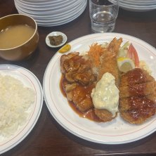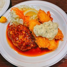 テイクアウトで900円。 ハンバーグ、カジキフライセットは4月限定🌸 2年近く前に行った時は、店員さんのタメ口感にあまり良い印象はなかったけど、それは地元下町ならではの感じなんだなーと思った。で、厨房でその方よりもずっと年上の白髪の男性が一所懸命調理されてて。 でも今回は、ニコニコの女性スタッフが仕切っていて、たぶん以前居た白髪の男性もニコニコで料理されていて安心したー。笑 美味しくボリューミーです!